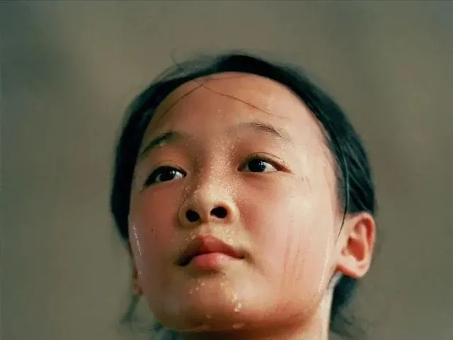 图中小姑娘脸上的汗珠,是真的“跑过”,那不是刻意擦出来的光泽,就是夏天热了、玩疯了,豆大的汗顺着额头往下流,眼神里藏着倔强,也带点天真,有点湿漉漉的干净劲儿,这种单纯的样子,现在镜头底下已经见不多了,那时孩子皮肤净、心里亮,表情全靠当下心情。