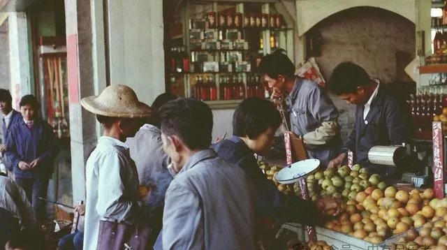 水果摊子上橘子堆成小山一样,旁边一杆秤,碗筷柜台,大家围着挑来挑去,舍不得买多,先问问价,摸两把过瘾都行,那时候大个甜橘子是年货,平常能捏一个尝尝味儿就满足。