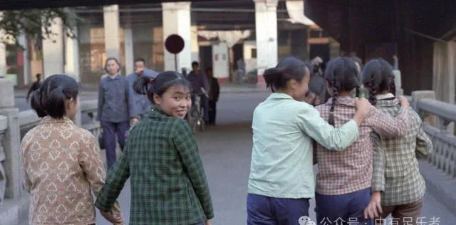 几个人笑成一团,胳膊架在肩头,说说笑笑,故事全在手势和表情里了,这种亲密劲,长大后真不多见,小时候什么都是一块儿,“结盟、拜把子、一起闹腾”,团结是真团结。