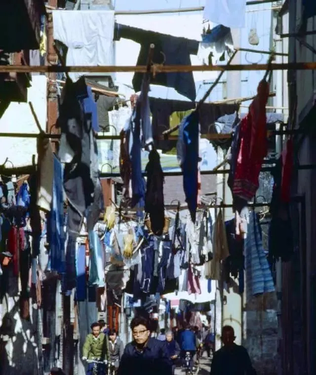 一根根粗绳架在巷子头顶,衣服、毛巾、床单一道道晾得晾,底下单车串门,来来往往,太阳底下一晒,整条巷子都是“自带香气”那种味,弄堂里的烟火气大多都晾在了这些衣服上。