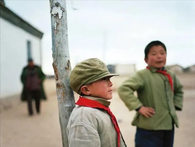 一根鲜红的领巾斜系在胸口,棉衣旧了,眼神却带着股不服气,杆子边上还倚着个小伙伴,70后、80后都知道,这一身就是“班里的骨干”,同学见着一身正,老师见着更喜欢搭把手。