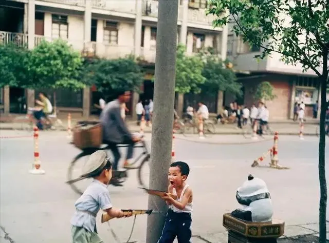 电线杆边俩孩子,一边笑翻天,一边咬着牙挥手打闹,跑起来呼啦啦的,裤腿都飞起来,后头远远的影子都拉长了,巷口总是能看见这样通红的脸蛋。