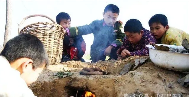 地头灶台刚起锅,几个孩子围着烟气吮指头,烤红薯一掰开烫手,皮烫得掉,里头面的,香气冒出来,抢不过的那一口,要等半天才轮到。