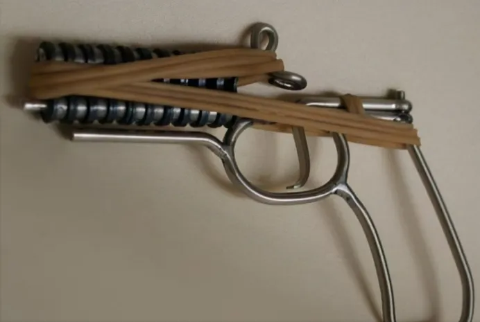 车链子做的枪,装上洋火,扣动扳机,还啪啪地响。你也玩过吧!