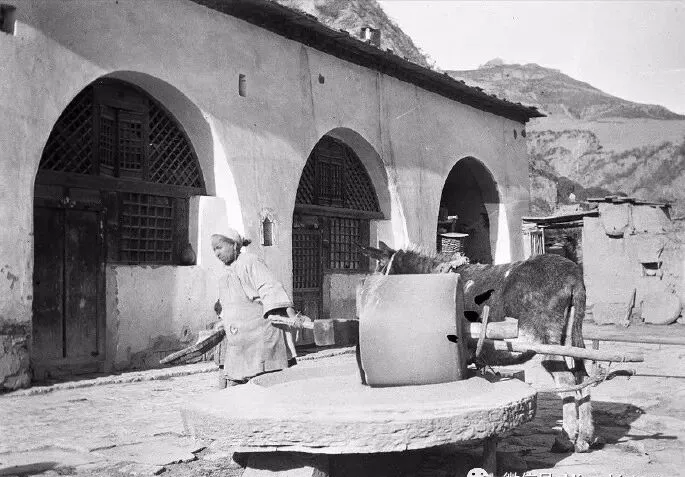 这个照片里,左侧是一头驴,右边稳稳立着个老妇人,穿着厚布衣,手头紧抓磨棍,这就叫“石碾盘”,陕北女人早晨起来第一件事不是刷手机,是赶着驴子推磨,磨面那个动作从小就在祖辈手下见过,石碾压得沙沙响,门前窑洞一溜三孔,半圆拱门砖砌窗连着土墙,磨出来的小米面黄灿灿,做出饼香得咂嘴,一个碾子能吃几年,一头毛驴就是家里的小帮手,老妇背后是忙碌一生的缩影,那时候谁家没喂个驴,日子全靠这一圈圈圈出来。