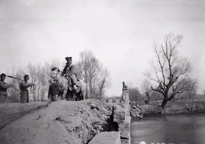 这个画面里能看到一座破桥横在赤水河上,中间骑马的人气势不小,身后还跟着挑担子的,桥面坑坑洼洼的,二八脚踏车都难过,马倒是胆子够肥,横跨一越,破桥下流水咕咚,岸边树光秃着枝,骑马汉子要过桥,脚下瓦片都敲得响,小时候老家河边也有座烂木桥,爸爸常说走那桥心里直发颤,怕的是下面的桥板一踩压断,走过去才算本事,现在桥面结实路也宽,破桥只留在照片上让人唏嘘。