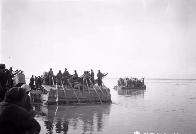 这一大片人在河上撑着大木筏,七八个人一队,竹篙落水,后面一拨人坐着,前头有人使劲吆喝,陕北大河天寒水阔,全靠这木筏子渡人过货,年景不好的时候,水一涨,连毛驴都不敢上去,大人说撑筏子的要手劲足,水急浪大,掉进水里那可不是开玩笑,等后来桥多路宽,木筏慢慢成了水面的影子,有些记忆只能在旧照片里回头找。