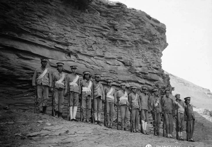 这排站得整齐的,全是当年的府谷警察队伍,看打扮不一样,衣领乱,帽子高低不齐,左边数来的第四个人还留着长发,估摸是刚去掉大辫子,改朝换代没带走脾气,老一代人情愿守着老规矩,有的警察腰上插着板枪,有的光着脖颈带白布条,外头乱,站成一排倒有点气势,奶奶说那时人心里还不服新政,瞧这穿着都看得出来。