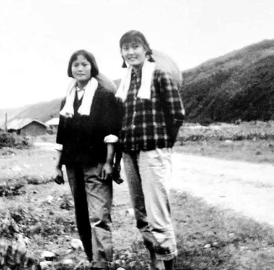 朝鲜族是一个热情好客的民族,虽然习俗与汉族不同,但和谐吉祥。勤劳善良的朝鲜族乡亲本质就那么善良热情、勤劳好客,对我们上海知青格外照顾。阿兹妈妮总是把家中好的东西留给我吃,以贵客相待,与男主人一样在桌吃饭,打破了朝鲜族“女人不上桌”的常规。在这种情况下,我不好意思了,于是我把阿兹妈妮也拉上桌,天长日久地我改变了他家的习惯,大家都在桌上吃。我在他家住了近一年,得到无微不至的照顾,也学会了一些朝鲜语,能进行简单交流。每次出工带饭,阿兹妈妮总是把家中好的饭菜给我带上。她那善良贤惠、待人真诚的品德,让我深受感动。直到集体户房子盖好,我离开他家住进集体户后,他们仍关爱着我、照顾着我。每当阿兹妈妮家做打糕、包土豆粉野鸡饺子时,常不忘我,大女儿顺子就来叫我到她家吃。当我要回上海时,房东还打了野鸡等山货叫我带上。他们用关爱和热情,爱护着我们这些远离父母和兄弟姐妹、独自在外的孩儿,是他们热情地接纳和安置了我们,并教会了我们干农活与生活。 1970年6月,与宫晓庆(右)收工回来在村口留影。
