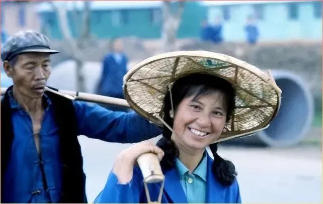 这张照片里的姑娘,笑得多甜啊!头戴斗笠,肩扛锄头,身穿蓝色工作服,标准的农村劳动妇女打扮。但你看她那笑容,发自内心的快乐和满足。那个年代的人啊,物质虽然贫乏,但精神头儿特别足,干活有劲儿,生活有盼头。不像现在,啥都不缺,反倒少了那份纯粹的开心。