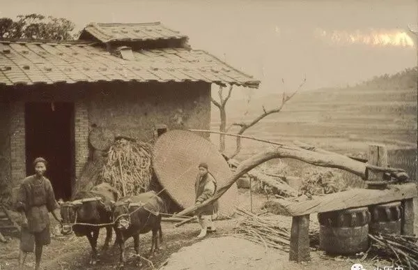 这图上的“庞然大物”叫石碾,说到底还是为了碾谷磨面,架子老重,得用牛马驴套着才省劲,人赶着牲口一圈圈转,厚石头轮沿着槽慢慢地压,把稻谷层层脱皮,跟现在的大型机器比是慢了不少,可好处是精细得多,不伤米心,地上有粮食味道,空气里头全是灰尘和汗水的咸味,爷爷那辈人说起石碾,最在意的反倒不是粮食多少,而是邻居互相帮忙,驴不肯走,还得叫家里娃娃哄上一哄,笑一场就过去。