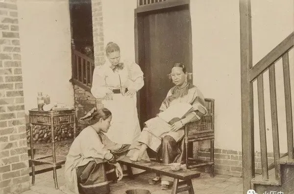 图中女人正被围着查脚,这三寸金莲的旧规矩,外边太太笑盈盈地翻看,却说不上是关心还是稀奇,坐那儿的女士表情有些无奈和羞怯,旧时候小脚是门槛,多少姑娘为了嫁好人家,小时候被娘亲用白布死死缠住,脚板边哭边咬牙,老家老太婆常叹气:“苦归苦,光景全在里面”,轮到现在人看,多半只觉得荒唐又心疼。
