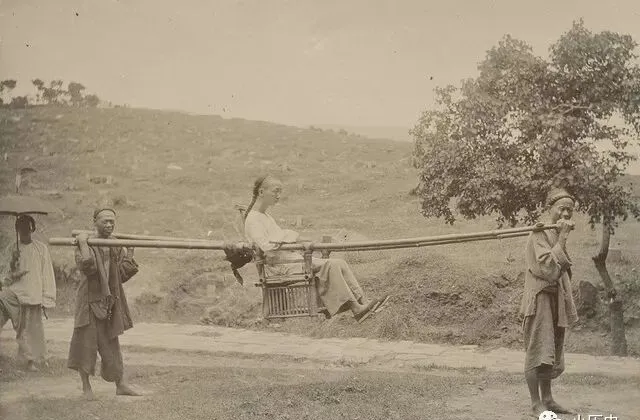 这画面上的东西叫滑竿,其实就是旅行脚力不便时用的代步工具,两根粗竹竿前后一挑,木篓构成座,四个壮汉抬着,坐上去一晃一晃,风把衣襟送出去,赶路时能省一双脚力,主家人面无表情,其实屁股底下颠得不轻,路过田间地头乡亲们全盯着看,小时候瞅见这个总琢磨啥人能坐,有回听大人聊,说过去有钱人不走路,这滑竿就是他们的车,普通老百姓碰上大事婚丧才偶尔用,用一次能念叨好几年。
