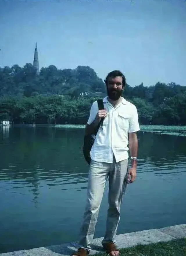 最后一张,画里的这位穿着浅色衬衣,留着络腮胡的外国友人,就是当年那位加拿大游客,他把杭州夏天拍进胶片里,也把自己踩在了西湖的岸边,背后矗着雷峰塔,镜头下一片碧绿和宁静,想想那会儿外头人真不多,见到外国人还会忍不住多看两眼,胆子大的小孩敢过去要合影,大人小声教,“人家是远道来杭州的客,咱也别怯场,有礼有节就好”。