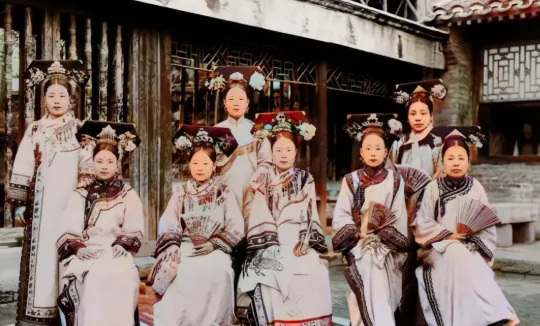 这个合照,坐着的是满族王爷的妻妾,全穿了整套的旗装,头顶大花翎,这头面,光插簪子都得分半天,劲道全在头上呢,衣襟绣着图案,白底子,袖口厚重,围坐得整齐,几个神情都淡淡的,没什么笑,也不故意摆气派,就是端端正正,有点像现在结婚照里头那种仪式感,奶奶一看照片里那些绣花,感叹一句,这活儿现在没人能绣得出来,料子厚,线密,怎么洗都不散,每一件都压着身份面子,照片一出来,这群姑娘一下子拉近了百年距离。