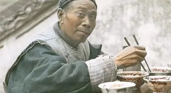这个男人没什么身份,就是最普通的老北京百姓,小碗边描着红漆,上头还蹭掉了色,半截筷子缺了尖也照样夹菜,皱衣角翘起来,看得出生计紧却得过且过,手里捧着饭脸上有笑,菜淡了也香,那时候饭桌是一家人的靠山,每回回老家看到堂屋正中摆老碗,忍不住就想起小时候围着饭桌转,小孩子嘴馋偷菜夹,母亲看了打趣说,孩子只要能吃饭,这日子怎么都不怕,再看看现在,吃饭多快,讲究多,可人心反倒淡了,那种琢磨着一口热饭里的知足在照片里一目了然。