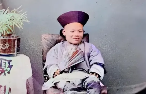 这位坐着的,是个身材特殊的侏儒少爷,打扮跟旁人一样,衣服和帽子规规矩矩,一只手拿着折扇,另一只搭在大腿上,脸上有点得意得闲的笑,四下无人围观,也没人躲着他,屋檐下一张椅子踩得结实,小时候听村里老人说,过去大家对身体有缺憾的人没那么多闲话,草草看一眼,人家也是日子照样过,和街头看怪胎一点不一样,那种不被看成稀罕物的自在,现在回头看才觉得可贵。