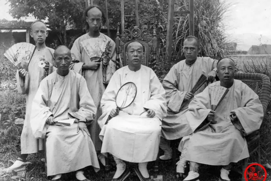 晚清老照片:6男合影表情滑稽,青楼女子外貌一般