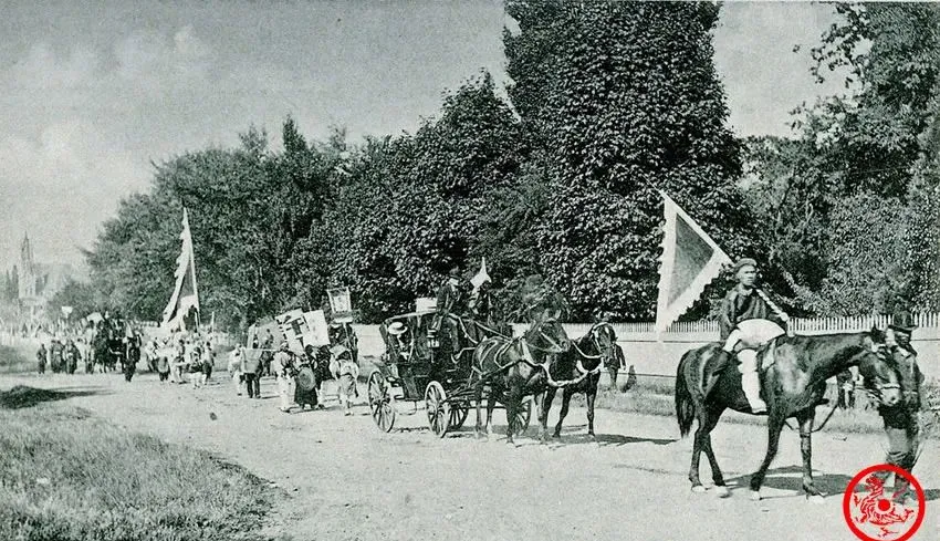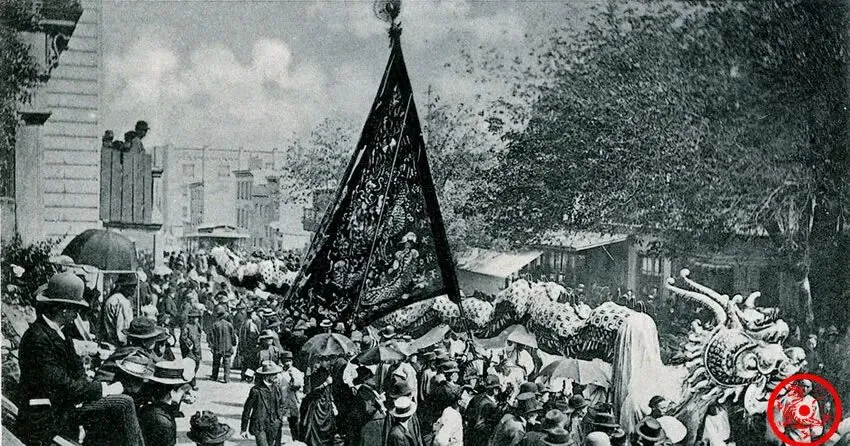 照片上的葬礼队伍,前头骑马,后面跟着几辆马车,队伍里有人扛旗有人步行,马车样式是西式的,但队伍背后还是那股浓得化不开的中国气,旗帜条幅棱角分明,队伍严整,隔着老远看过去,送别亲人的那份庄重感一点不马虎。奶奶说那时候丧礼讲气场,哪怕自个漂泊海外,也得按家乡规矩来,熬成乡音的人总是改不了埋骨的习惯。