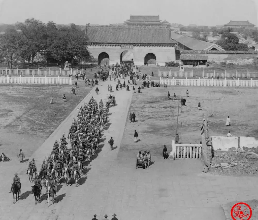 这个阵仗大,新鲜的不是北京人,是八国联军的骑兵,照片里大队马队从大清门里直接晃晃当当走出来,以前皇城正门,甭说老百姓,连官员都得下马侧身溜过去,今天倒好,洋枪队伙计走得比谁都凶,后头跟着几个大轿子,城墙上站满看热闹的人,这场面让老头子见了只叹气,昔日皇门如今换了兵把守,规矩都成了烟,也没人再提拱手作揖那一套了。
