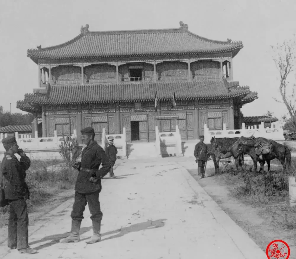 照片上的紫光阁原是检阅武举的体面地方,晚清没几年,竟被洋兵一脚踏进来当了司令部,两边栓着马,门口站着士兵,院里多了几只马桶和铁皮箱,听我爷爷说,三百年前这里贴挂的都是功臣画像,现在却轮到外人屋里坐茶几,连院子里的花木都有点蔫巴,新旧交替,就这么没声没响溜掉了。