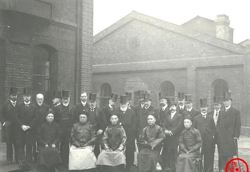 这个黑白合照背景里头可是砖墙厂房,前排穿官服、后排一水高顶礼帽西装,图中的是出洋考察大臣的阵仗,载泽、荣庆那帮人在英国考察制度,后头站着正宗的英国绅士,那年出国不是坐飞机,得是朝廷信得过的大人物,走一趟回来立马要跟皇帝慈禧汇报。