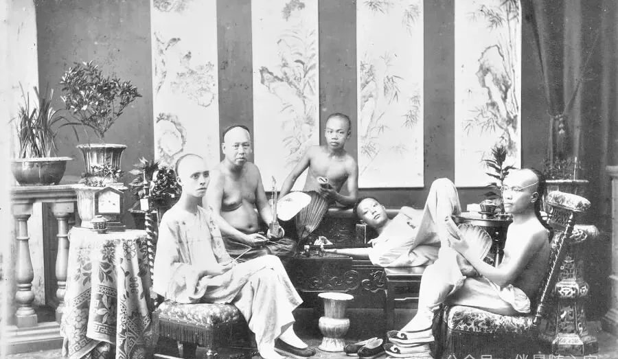 晚清老照片:父子居家纳凉光膀子出镜,宫女没有影视剧里那么漂亮
