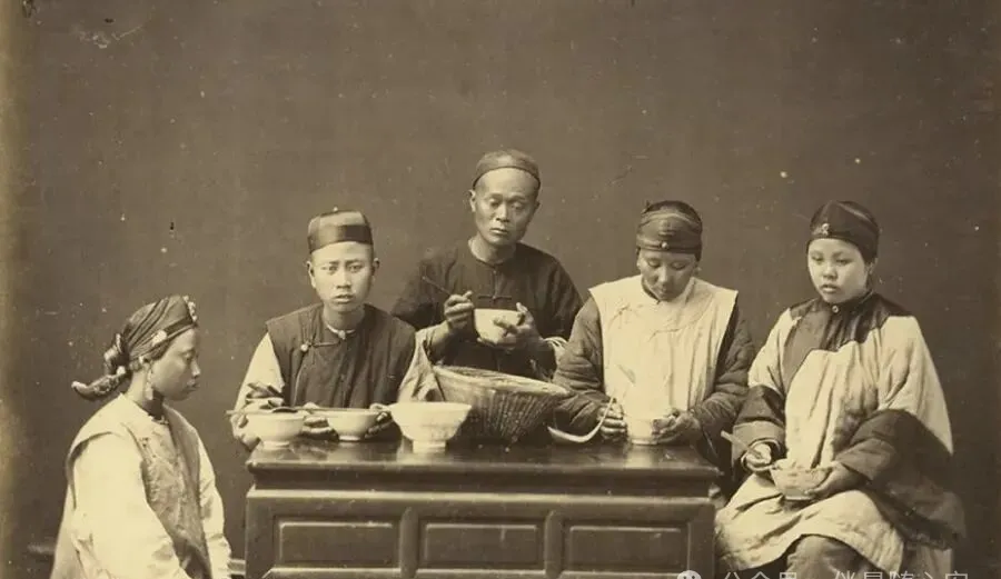 从坐姿也能看出来,谁先吃,谁照应,谁低头不语,都有家里的分寸。饭菜未必丰盛,但碗筷一端,日子就有了着落。过去很多普通人家,吃饭不是享受,更像一天劳作中的停顿。热气从碗口往上冒,筷子碰碗沿有轻脆响声,吃完还得立刻收拾,接着干活。旧时代的饭桌,连着的是一家人的秩序和辛苦。