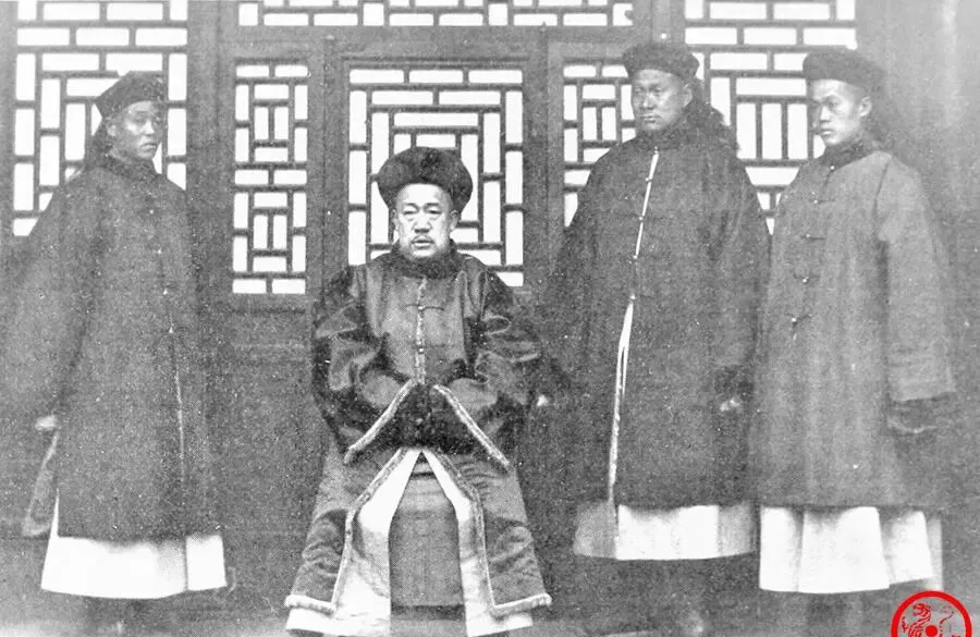 这个坐在圈椅上的人就是肃亲王善耆,他身边三个侍从一个个低眉顺眼,那身绸袍子看看就知道料子厚重,这一身规矩大褂换不到现在人一声惊叹,善耆也算是天生的达官贵人,倒霉摊上了庚子年的乱事,王府烧个精光,大爷也落了个靠人接济的下场,小时候听爷爷咂舌,说老北京的王爷气派是封在墙皮外头的,变乱来了,一夜成了空壳子,天底下风水宝地也守不住大势头。