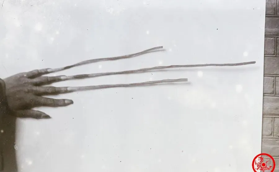 这个手,指甲长得让人看着都觉得别扭,三根能赶上筷子,一尺来长,像什么“武林异士”,其实是福州一位丁姓教书先生的手,家里老人讲,他这指甲不是好看,也不是抖威风,全是遵着他母亲的临终叮嘱,一根代表天,一根代表地,一根代表孔夫子,从小就不让动剪刀,整整养了一辈子。