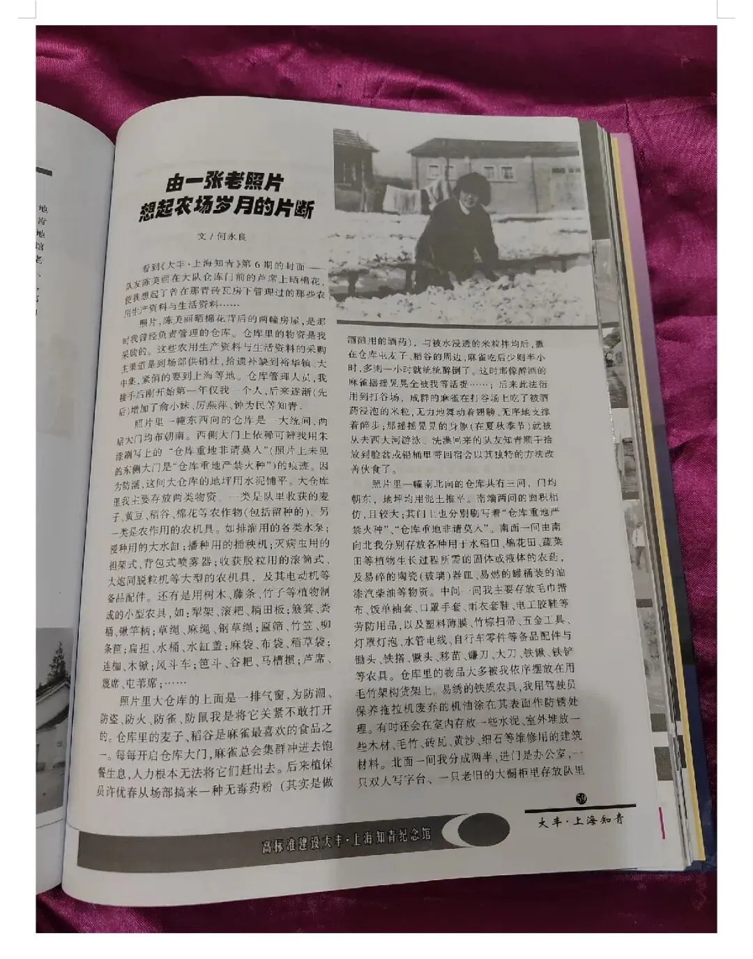 2024年7月20日,我在苏北农家乐,挚友彭源兄在“贴花情缘”微信群发消息给我。……(彭源兄)在市属农场上海知青《老照片背后的故事》一书中,看到《一张仓库旧照片的来龙去脉》文章,作者:海丰农场元华一大队何永良……