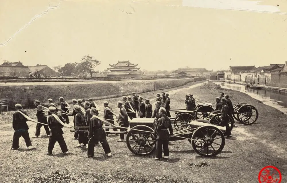 图里这一堆炮和人马,原来就是卫安勇的炮队在操练,一水儿圆轮大炮推进在河边,几十号人排得整齐,人人戴“绿头巾”,腰刀长带压着,庄重里带点洋气,模样可跟城里常见的兵勇不太一样,炮虽不是那种新鲜大洋枪,光架势就让人不敢小瞧,他们每回在城门外操炮,街坊不敢多停脚,都是远远看着热闹——