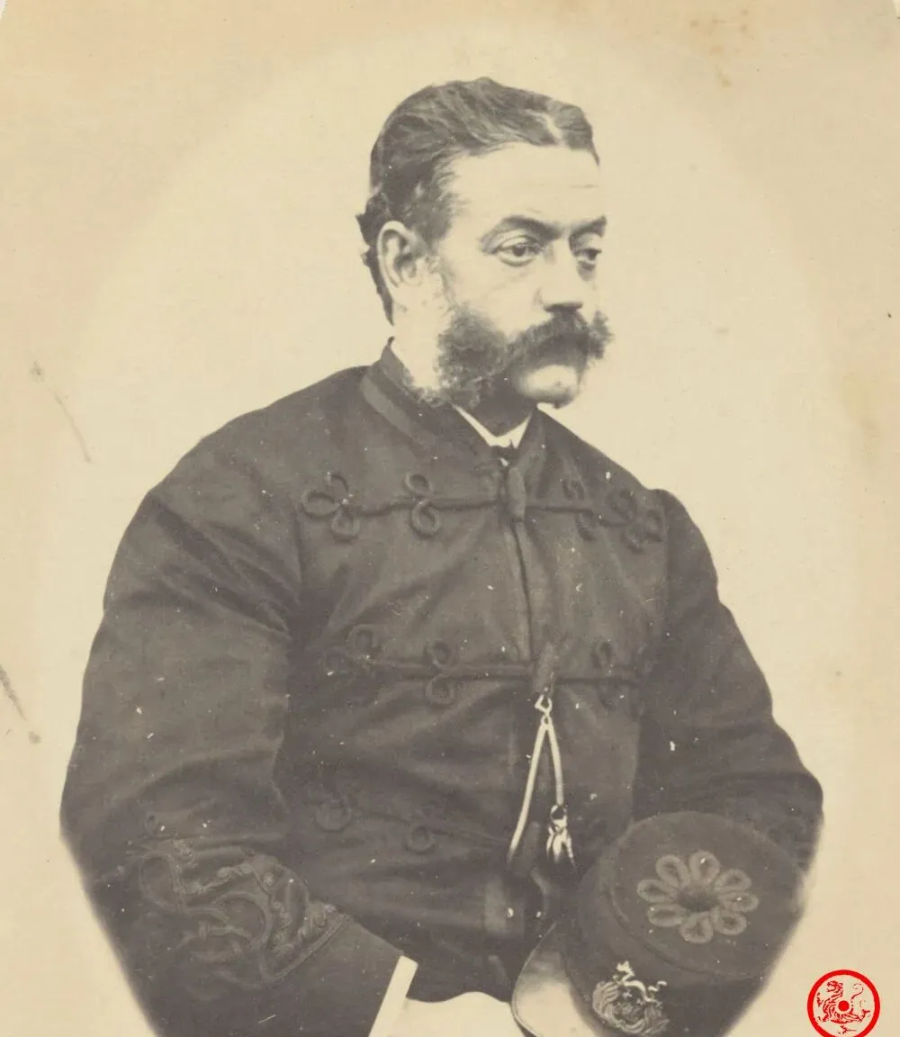 这位西洋胡子就是当年宁郡卫安勇的管头——库克上校,衣裳讲究,纽扣和花纹显摆着洋人的气派,不光带兵,行头也比一般官差威风不少,左手扶着帽,神态淡定,这张照片也不知被多少宁波孩子瞧过,只说“老外穿大褂”,小时候真不懂是啥讲究,只觉得拍照那架势比咱自家师爷还端。