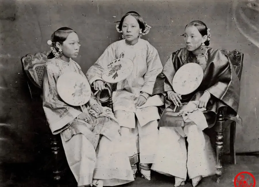 图里这三位端坐得笔直,手里抓着团扇,发间头花、身上大袖,气质透着股子富贵人家的讲究,走路是不沾地、出门靠抬轿,那时候的三寸金莲就藏在厚厚的裙角里,看着好看,实则苦得很,奶奶见了总叹气,“咱这脚板实在太金贵了,连马路都沾不得”。