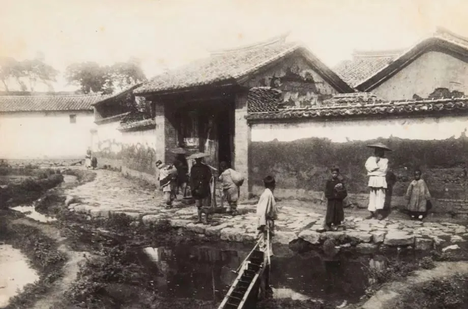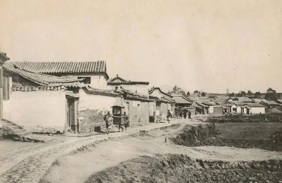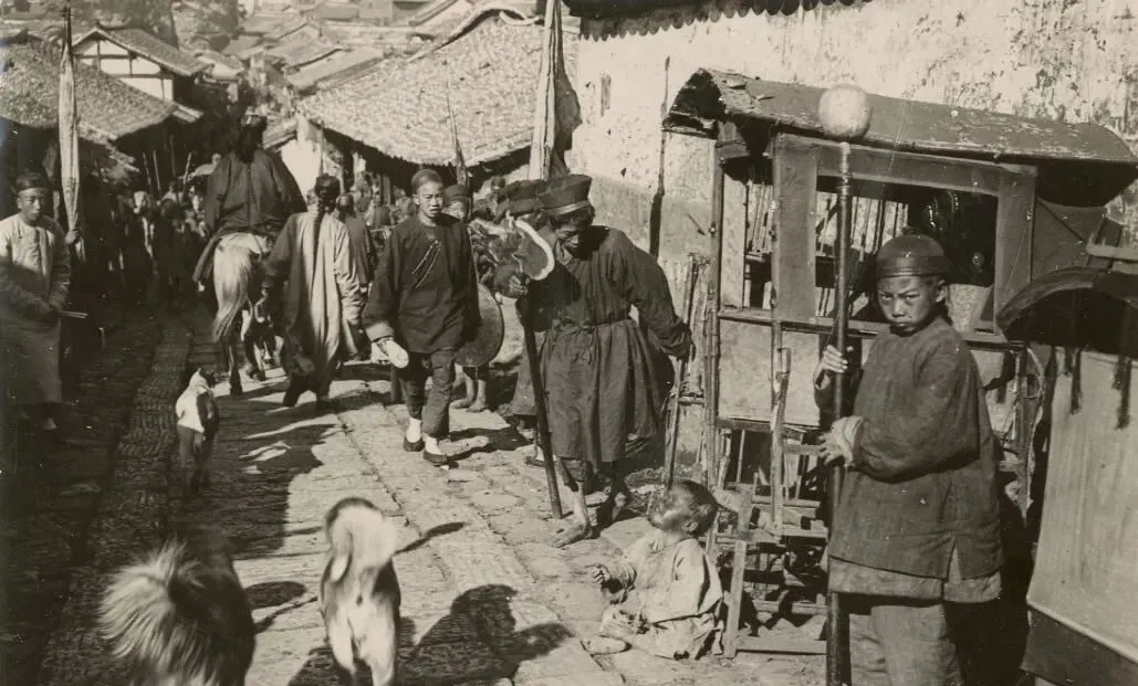 老村巷其实没啥特别,房顶的瓦片斜斜地垒着,墙面坑坑洼洼,有的地方还掉皮,前头一口旧轿子,肩膀上搭着破褂的轿夫正擦汗,走惯土路的人,看见这种窄街,从来都知道中午最热,风一吹墙角都是柴屑味儿,现在新楼拔起,老巷还能剩几条呢,也就靠这照片里回想几句。