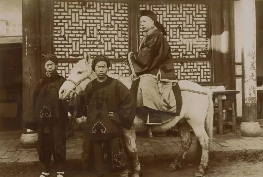 这个骑在马上的官爷,不说也知道身段有多讲究,黑布长袍披到马背,旁边两个随从满脸严肃,手里拽着缰绳,那匹白马刷得干干净净,驮着主人,一动不动,小时候在街角见过当差的骑马,爸说,这活儿可风光,也讲究操守,不能跟现在小伙子骑电动车比,走哪都要规规矩矩。