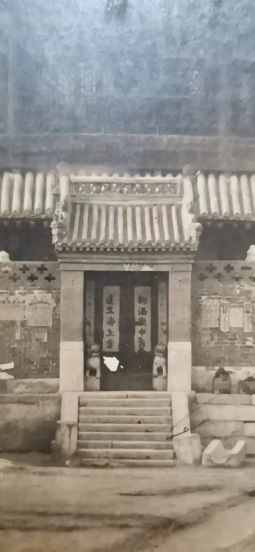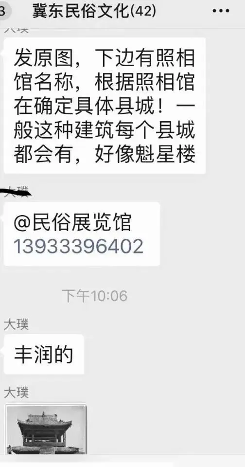 在三屯营老城区一户老房子内发现一张清末古建筑老照片,第一感觉就是三屯营古城建筑老照片被发现了,心里有点小激动,因为三屯营古城清末民初古建筑老照片一直是个空白。立刻查了三屯营相关资料,从老版《迁安县志》的蓟镇草图来看,几乎可以确定这就是三屯营古城中轴线上最北端建筑:真武阁 趁周六又跑到三屯问了一下三屯当地几位年长的老者,可都回忆不起照片是不是真武阁,为了把稳起见,又联系了一下县里研究三屯古城的专家刘老师,得到非常明确的答复:这不是三屯的古建,三屯营的古建没有两层以上建筑……晚上用放大镜又仔细看了一下照片的细节,建筑外墙上贴的竟然是当时的广告,广告商家地址在:河头?把照片发给了有共同爱好的大哥(大哥有一个唐山范围的民俗爱好者群),很快有了消息:照片建筑在丰润:慈云阁慈云阁,被称为“京东第一阁”,是丰润“韩城十景”之一,不仅是历史地标,也是文化活动的中心,曾备受游客和香客青睐。阁内供奉着一尊高达12.8米的千眼千手观音菩萨,泥塑十八罗汉分立两侧,大佛的造型生动逼真,令人叹为观止。阁顶的彩绘花卉图案与顶棚的出入口设计更是巧妙绝伦,为整座阁楼增添了浓厚的艺术氛围。此阁在1957年水利大修和丰韩路拓宽中,因施工需要被拆除。一座华美的古建从此便消失了在大众的视野中……