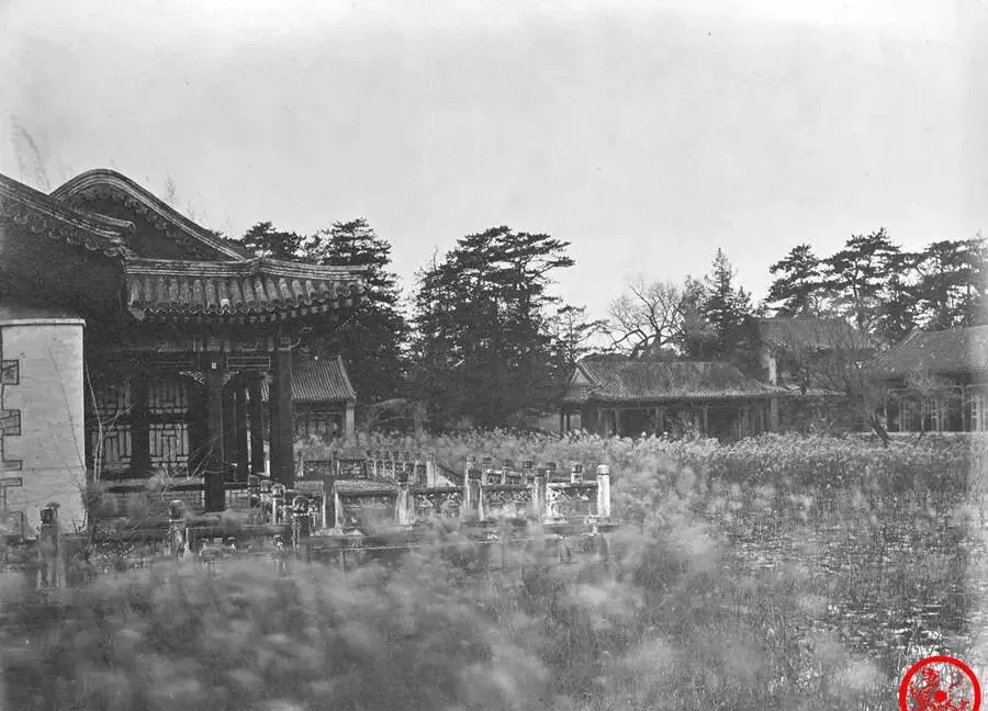 这块地方以前是大水法前的人工湖,照片上水面平静,倒映着断墙楼体,一圈芦苇密实地挡着,风一吹全晃起来,小时候谁要是能在这样的大水边跑步,那可真得福气,现在只剩冷清的水映旧梦,爸说这地方要放在现在,来摆婚纱照的队伍都能拍到天黑。