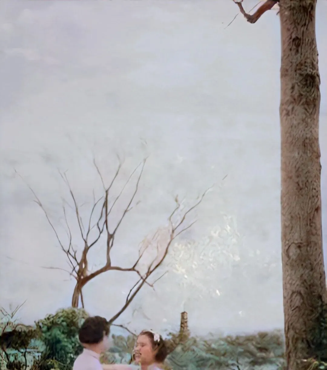 小女孩在江边大树下打闹,身上简单衣裙,背景里看得见远处的塔影,天边晕着点紫,谁的童年不是这么混过来的,没什么高科技,有的是树荫下的小脾气和笑闹声,日头快下山了,家里大人喊两声,几个孩子一路跑一路笑,广州老味道大概就藏在这些细枝末节里。