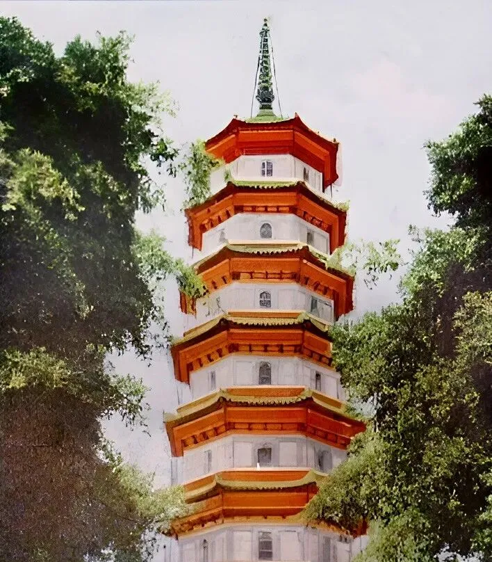 图中这座塔叫赤岗塔,七层八面,橙红外壁,绿檐像鸟的翅膀,小时候坐老式小巴进城,只要远远看到这个塔,就知道该下车了,那时塔脚下还是稻田和泥路,现在四周全变成车水马龙的大马路,可这座塔却总在那,一动不动,像老广州永远不变的坐标。