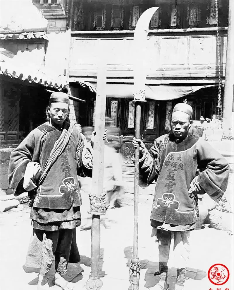 晚清老照片:提督大人现身,衙差手持青龙偃月刀