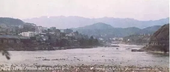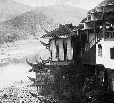图中江面上漂着两艘大船,码头边江心楼一字排开,旧时坐船过江买菜是常事,舱里全是人声嗡嗡,小贩推车直接上到甲板,风一吹满是腥味和油脂味,船上遇见熟人,不自觉就靠边坐聊上两句,有时候遇暴雨还得跟船老大一直捱在江心看水势,后来轮渡越来越少,日头再晒,也没人愿意等那一班老船。