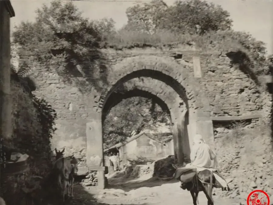 这石头砌成的老拱门原来是过街楼,用的年头实在久了,上头已经塌了,石墙里全是风化的痕迹,过去来往的人、牲口、担子,都得从这里穿过去,门槛下的地都被蹄子踏得瓷实,爷爷说那时候过个门槛都要打起精神,矮的得哈腰,骑着毛驴的也得注意鞍子别蹭着,乱世里再大的门也静悄悄,出了门就是另一种光景。