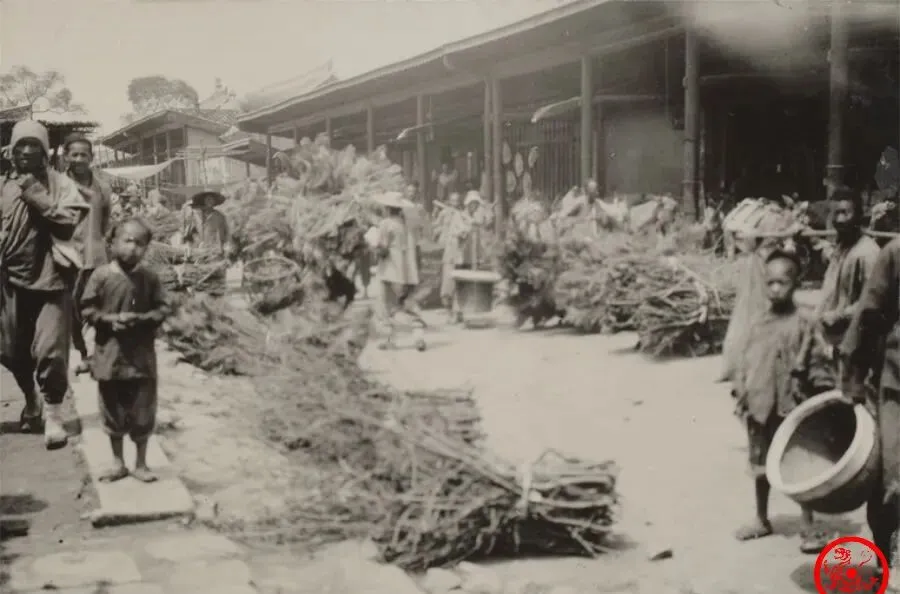 这是个柴草市场场景,一小捆一小捆的树枝、枯柴,全被码在地上,买卖人在中间讨价还价,穷人家买不起煤,只能靠这些树枝烧火做饭,冬天冷的时候,屋里炉膛里呼啦啦着火,抬眼全是柴草味,小时候见大人往地里钻,谁捡回多点柴,谁晚上心里才踏实,现在城里人哪还为烧柴操心,那会儿却是天大的事。