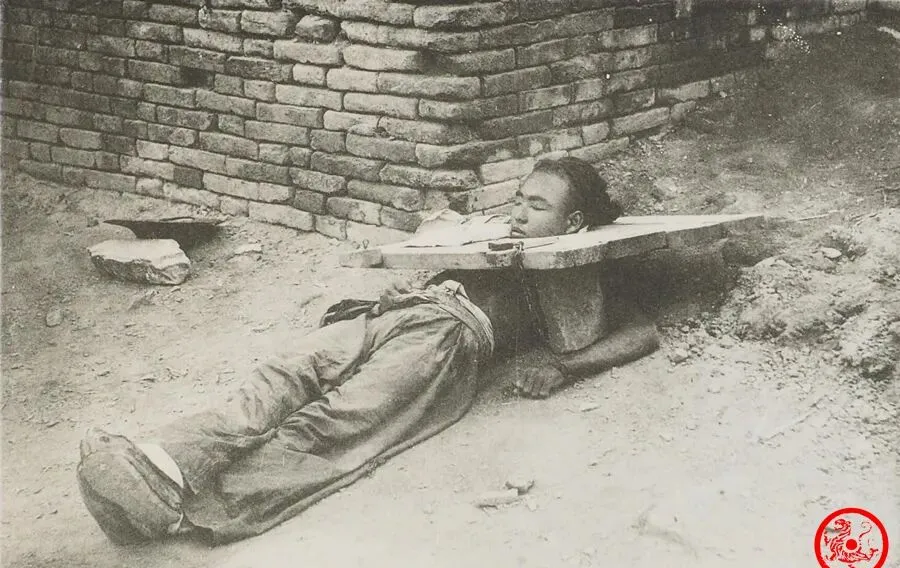 这位趴在地上的人,脖子被大厚枷板死死扣着,两只手还锁在木头上,这枷板足有三十斤,一动弹就勒得慌,砖头支在底下勉强歇口气,在路边晒着太阳,想喝水、吃饭都只能靠人喂,听爷爷讲,这法子就是用来“杀威风”的,真要碰上,苦不堪言,不是没想过反抗,实在没路可走。