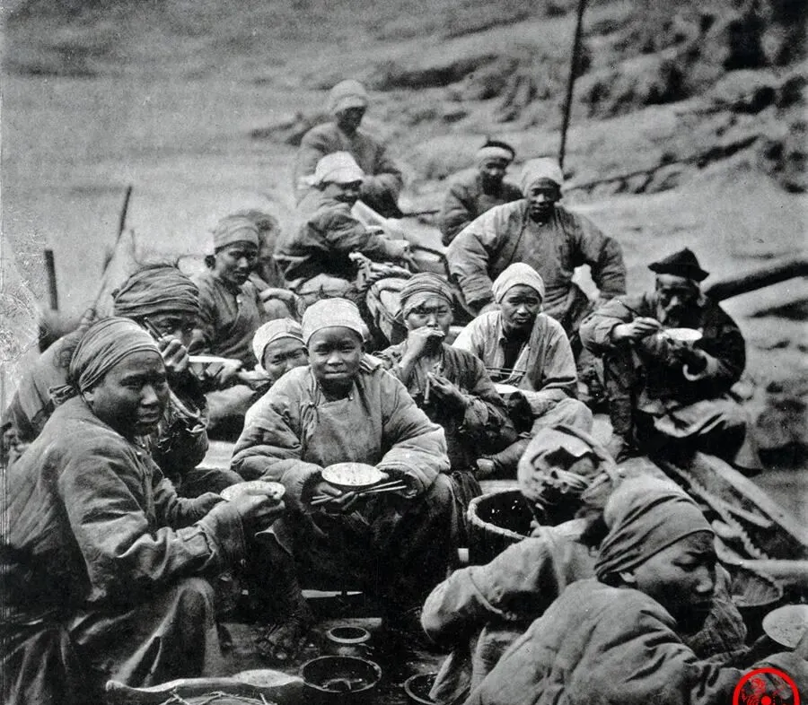 河里飘着的都是干苦力的爷们,裹着头巾,蹲一圈专心扒饭,这帮人守着船拉纤,没点力气熬不下去,一碗粥一口菜,吃完还得赶着拉绳,他们说,“干一天抵仨苦力”,那时候只要能吃饱,日子就比前头强。