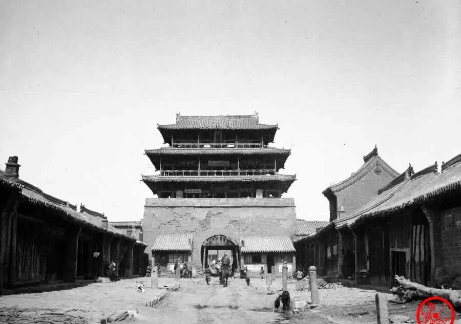 图中正中间立着高大楼牌的,是张家口城门,两边老屋低矮,弄堂里走动的人都不急不慢,砖墙缺角,瓦片塌下去也没人急着补,小时候到这种老地方,最怕下雪天,滑一跤一裤子灰,地平得像一张压褶的厚布,老街口两头鸡叫,叫卖声融在风里,张库大道就从这里出去,听老人说买卖大的货都要从这头发出去,谁家的铃铛响,就是谁家的买卖忙。