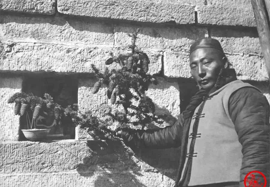 白扦这种树,说大不大,说小也不小,树针筋道得很,一根根攒着球果,拍照这位大哥站砖墙前头,衣料鼓的,袖口往外翻,手里那枝碧绿带着点青灰,奶奶说那阵五台山冷得早,春天抽芽秋天就落籽,全靠地气养活,一见到这样的植物都少不得惊叹一声,山里人勤快,树下拾果掰壳当宝贝,小时候把白扦果掰开玩,手指头捏得脏黑,回了家挨骂还美滋滋,这东西现在不好找,好多新一代压根没见过真货。
