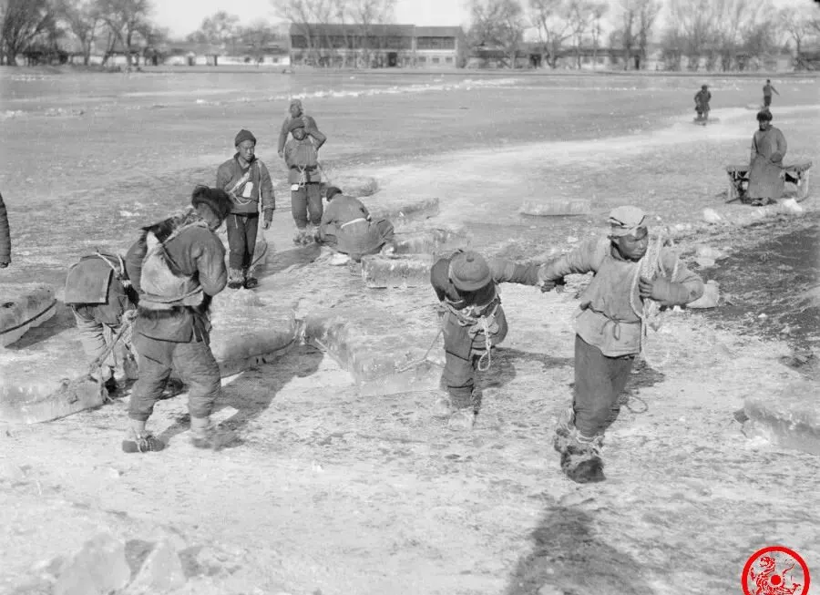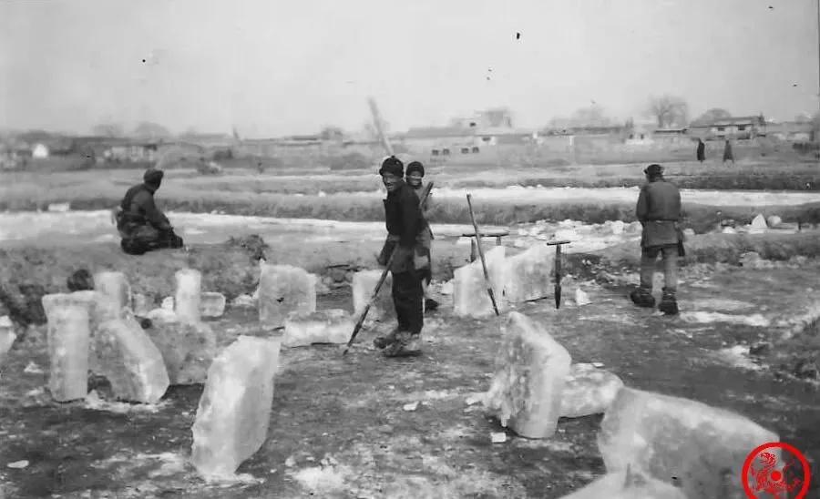小时候见过家里老人指着类似的照片琢磨,说那阵子冰取早了不行,冻浅易碎,太晚又怕春水翻化,采冰是个讲究活,也得看天吃饭。
