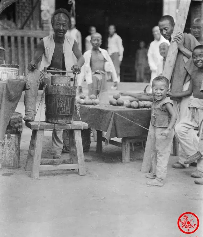 有人摊开一桌,老式木制手摇冰盏,咯吱一声就能碾出雪花似的冰渣,旁边凑着一圈孩子,个个跃着身子盯着盆里那点白,一把冰拌上调味糖浆,孩子们抢着伸手,冷在口里甜在心里,大人们在一边闲聊,背心一搭,叹一口气,“这才叫消夏,甭跟我提什么电冰箱。”